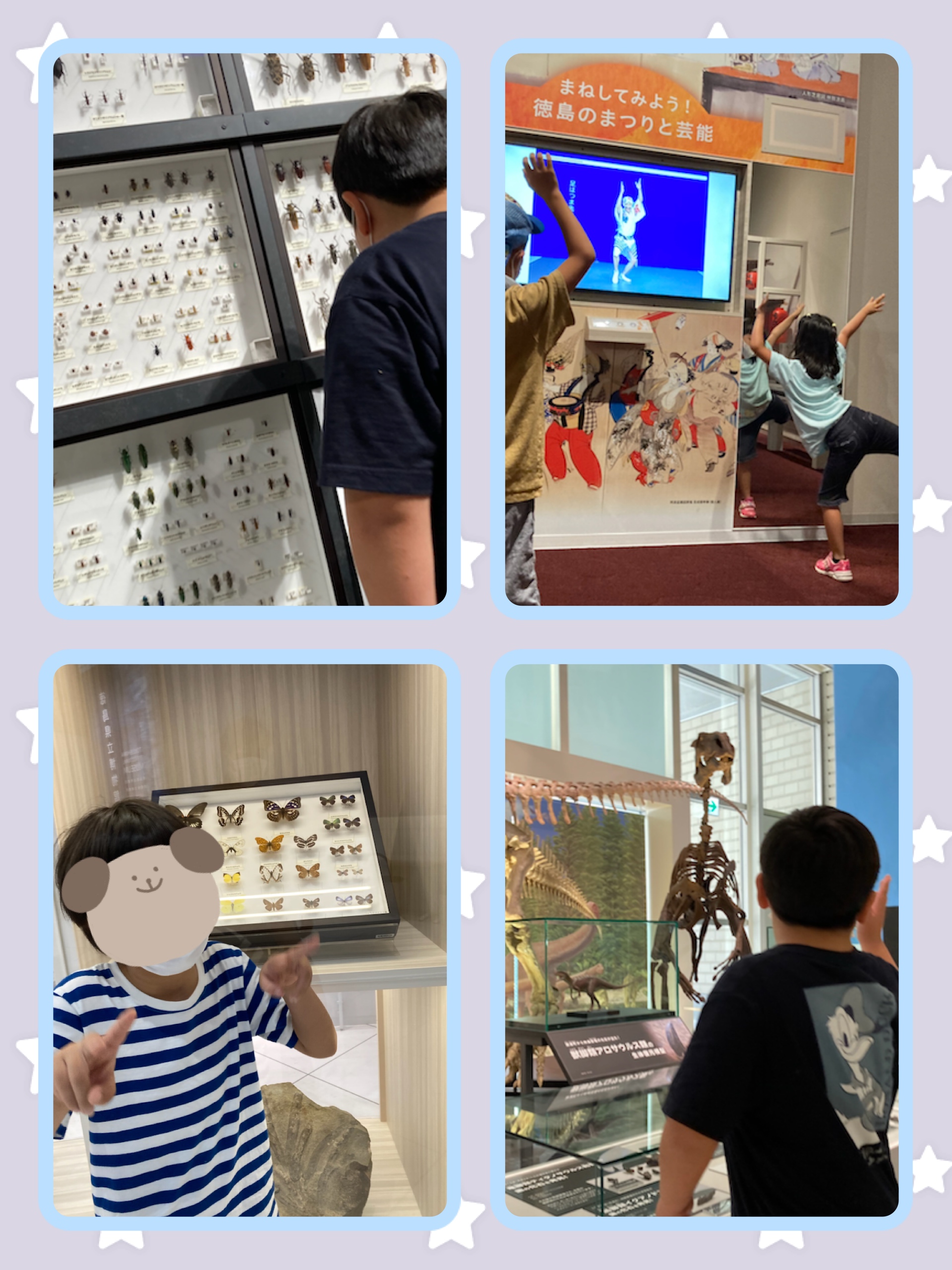 児童発達支援・放課後等デイサービスFamilyぴーすです! 今回は夏休みの活動について載せていきます✨ ![]() 砂浜では シーグラスや貝殻を探しました✨ 「冷たくて気持ちいいよ」 「魚おらんかな~」と 海岸散策を満喫しました! ![]() 自分の好きなキャラクターを選んで、、、 プラ板に写していきます。 上手にできるかな~ 完成したプラ板は連絡帳につけて喜んでいました✨ ![]() みんな大好きオムライスを作りました ピーラーや包丁も上手に使いこなしていました! 「自分たちで作るとおいしいね」 「お腹いっぱい~」と完食していました(^^) ![]() 砂浜で拾ったシーグラスや貝殻などを 貼り付けて写真たてを作りました! 玄関口に飾っているので来所の際には是非ご覧ください! ![]() 恐竜や昆虫好きの子どもたちは大興奮!! 「うわ~、あっちも、こっちも行きたい✨」 詳しく書いてある説明を読んだり楽しんでいました☆ みんなで阿波踊りの真似っこも(^^)v ![]() 地震についてのビデオを観たり、 説明を聞いて消火器の使い方も教わり、消火体験もしました! また、映像を見て事故や災害をいち早く知らせて 適切で正確な状況を伝える通報体験もしました。 子どもたちにとっていい機会になりました。 ありがとうございました。 この夏休みでは、 子どもたちと色々な所に行き様々な体験もして 楽しい思い出を作ることができました✨ 〒773-0015 徳島県小松島市中田町字千代ヶ原24番地の1 TEL0885-32-1234 児童発達支援・放課後等デイサービスFamilyぴーす |