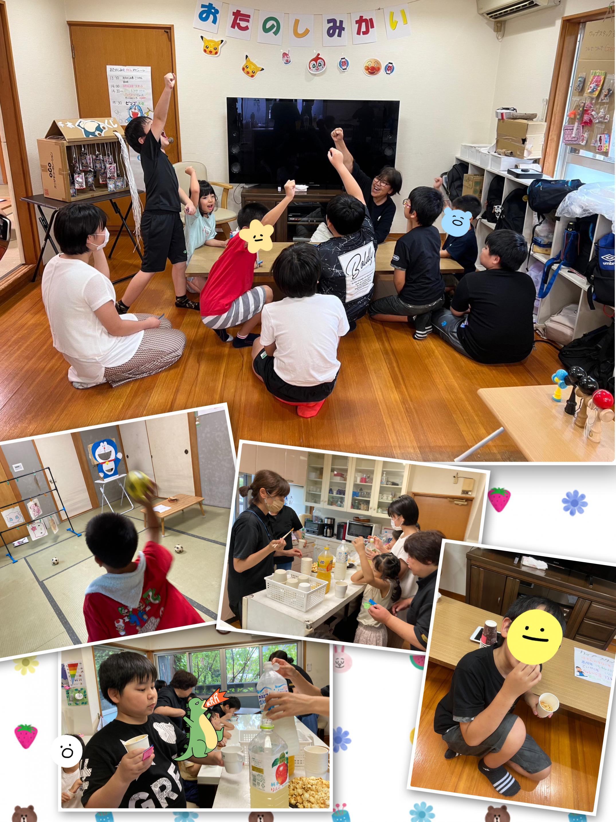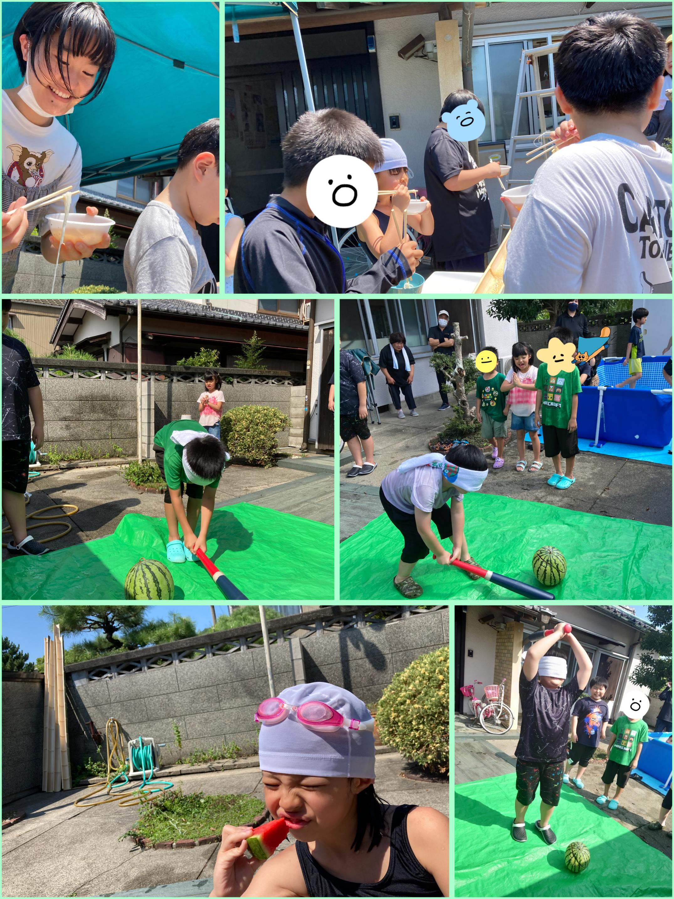 児童発達支援・放課後等デイサービス Familyぴーすです! 今回は夏休みの活動について紹介していきます(^_^)v ![]() 夏休みに入ってからは前庭でプールをしました! プールが始まりたての時は水に顔をつけるのを こわがっていた子も潜れるようになりました(^^)v 水中じゃんけんもタイミングを合わせて楽しんでいました✨ ![]() 前庭で流しそうめんとスイカ割りをしました。 順番に並んで上手につかめていました。 割ったスイカもみんなで美味しく食べました(^^)v ![]() 消防署見学では、消防車の種類や中身の説明を聞いたり 実際に使う道具も持たせてもらいました! 救急車の中でも色々な話も聞き体験もできました。 今回は見学させていただきありがとうございました。 ![]() 夏休み最終週にお楽しみ会をしました! 夏休み中に貯めたポイントをお楽しみチケットと交換してスタート☆ ストラックアウト・けん玉・カップスタッキングと 様々なゲームに参加してクリアすると景品と交換できます。 ポテト、たこ焼き、ジュースは食べ飲み放題でした✨ 子どもたちみんな楽しんでくれました☆彡 今回はここまでです!! 〒773-0015 徳島県小松島市中田町字千代ヶ原24番地の1 TEL0885-32-1234 児童発達支援・放課後等デイサービスFamilyぴーす |