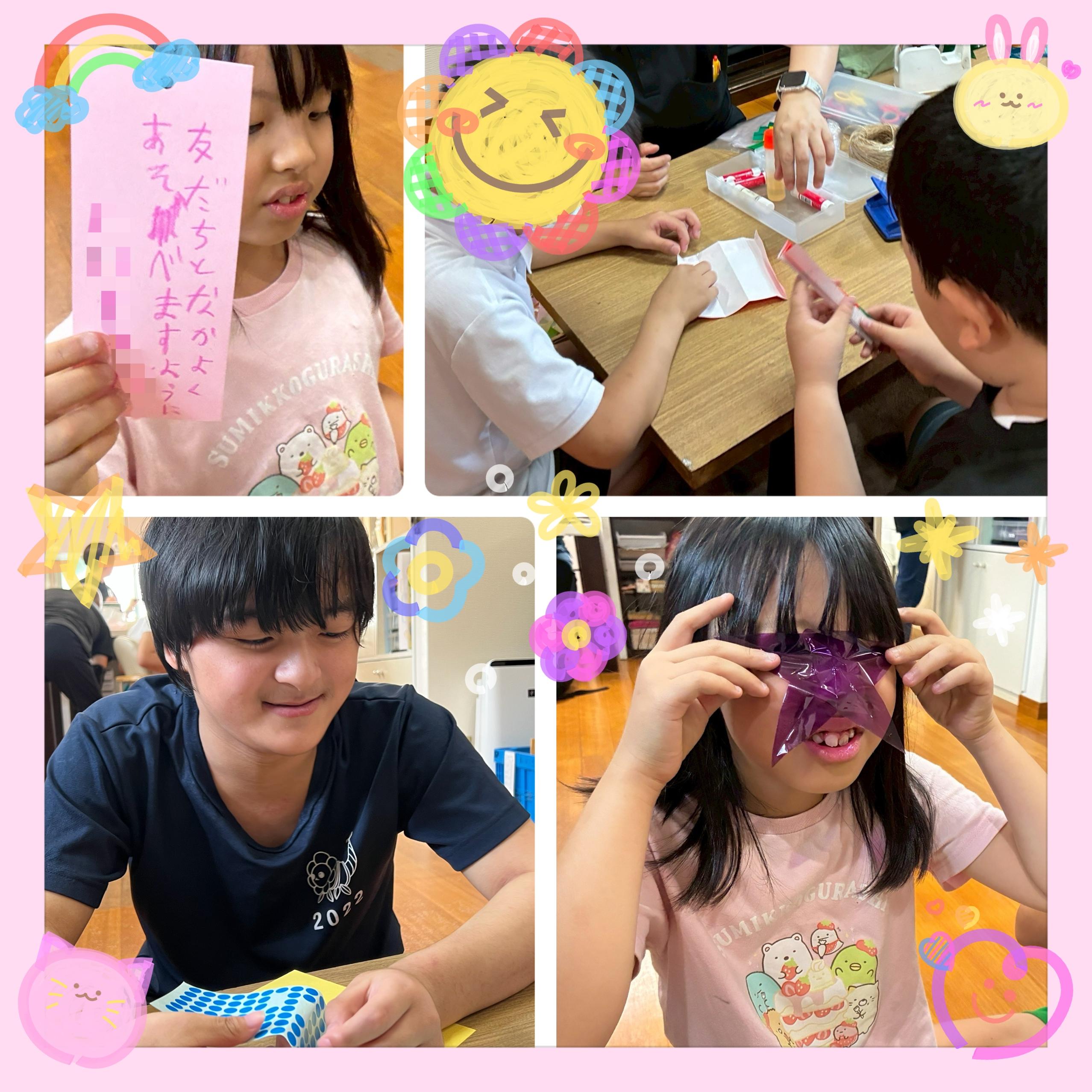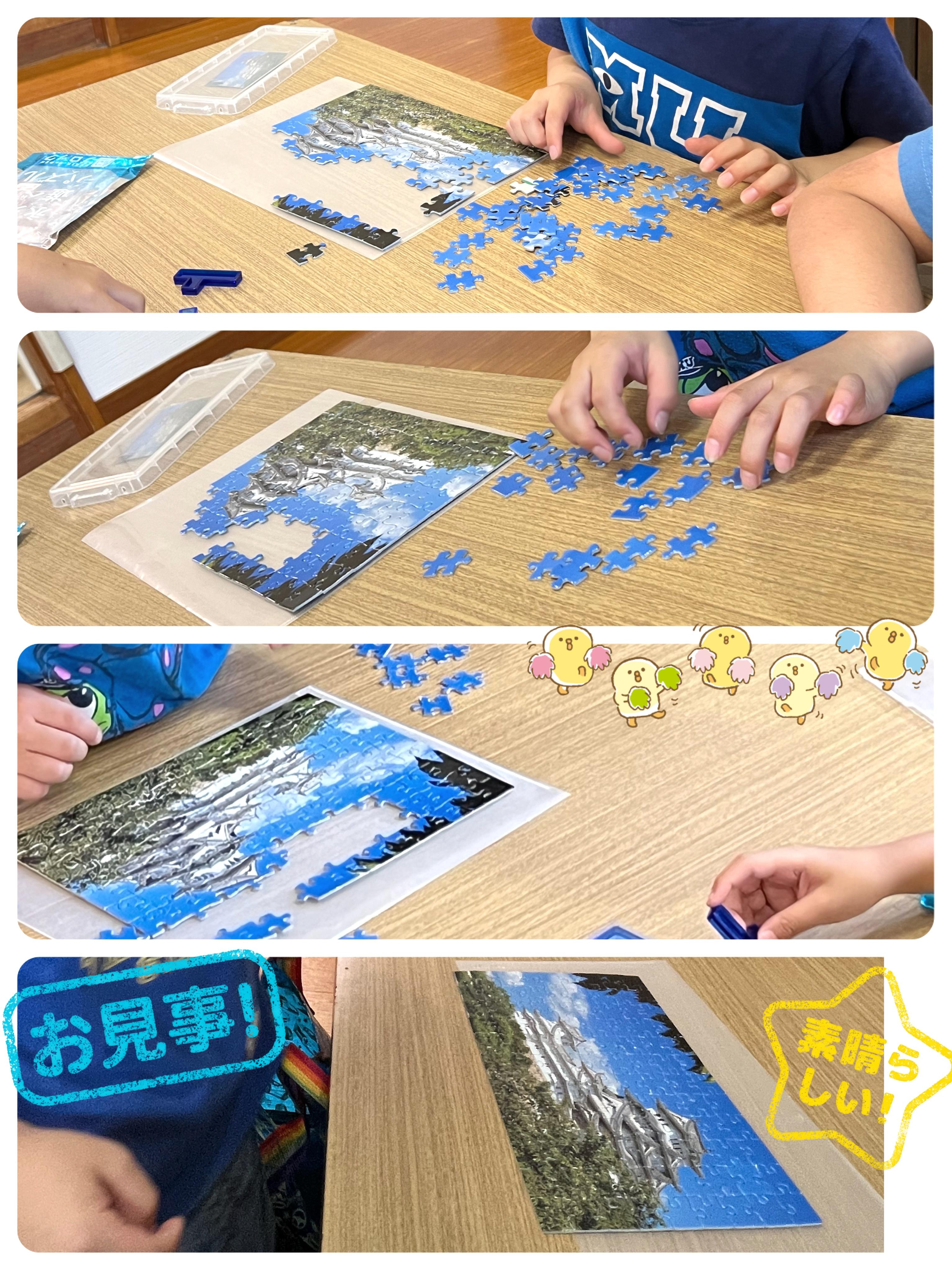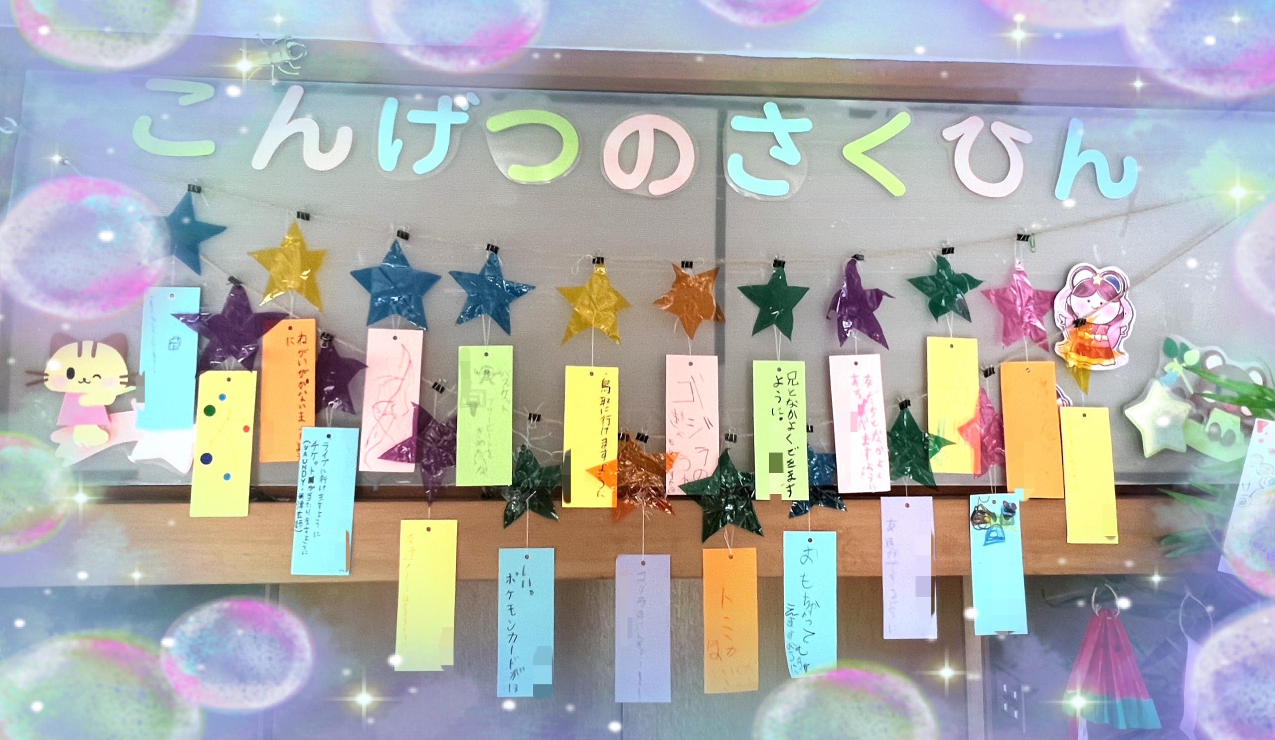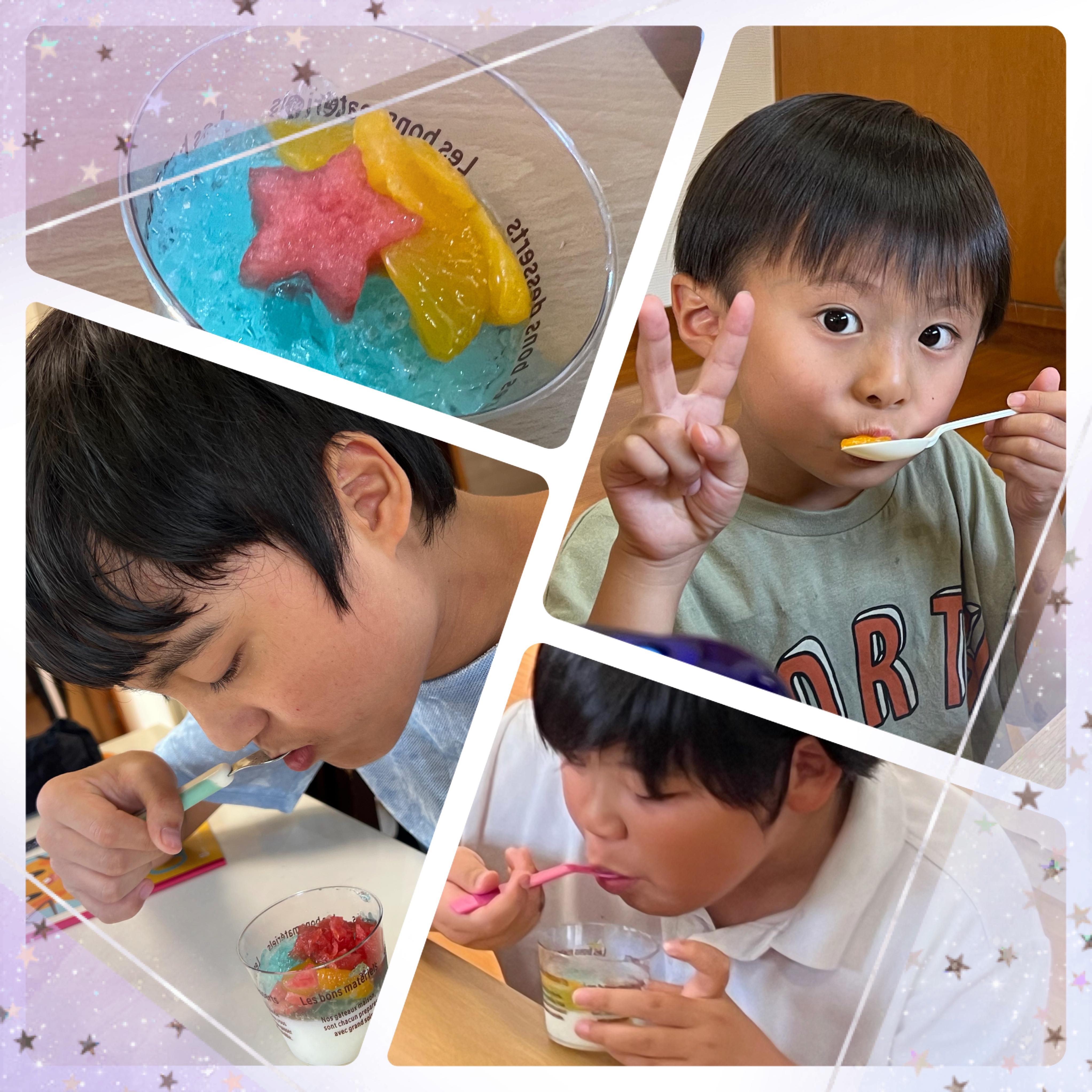 児童発達支援・放課後等デイサービス Familyぴーすです⭐ 子どもたちが楽しみにしていた夏休みに入りました! 朝、来所すると洗濯物を畳むのを手伝ってくれたり、 昨日観た映画やテレビの話し、 今日楽しみにしている行事の話しなど 朝から元気な声で溢れています(◍˃ ᵕ ˂◍) 7月の子どもたちの様子をお伝えします ⭐七夕⭐ ![]() ひとりひとり短冊に願い事を書きました! 「おもちゃを買ってもらえますように」 「友達とたくさん話したい」 「バスケでブザービートを決めたい」 可愛い願い事、応援したい願い事が たくさん書かれています( * ॑˘ ॑* ) ![]() ![]() 七夕飾りもみんなで作りました! ひし飾りなどスタンダードなものから、 スイカ飾りも目立ってとっても可愛く作れています⭐ ![]() 当日はみんなで七夕ゼリーを食べました みんなの願い事が叶うと嬉しいですね- ̗̀( ˶'ᵕ'˶) ̖́- ◇パズル◇ 板チョコのパズルにチャレンジ中です! \こうかな?/ ![]() \むずかしいけどもうちょっとやってみる/ ![]() \できたよ!/ ![]() ピースを裏返したり組み方を思い切って変えてみたり 試行錯誤しながら頑張って完成させることができました! こちらの子は108ピースに挑戦! ![]() 同じような色、柄に苦戦しながらも 1週間くらいで完成できました とっても頑張っていましたよ⭐ ◇折り紙◇ ![]() くまモン、ベイマックス、リトルグリーンメン 「ここどうするん?」 「教えてあげる!こうして~」と ふたりで協力しながら折りました☺️ ◇工作◇ ![]() 「べとべとさん」という妖怪だそうで、 ダンボールを真ん丸になるように貼り合わせ、 足を付け下駄も履いています⭐ 自立もできます!すごい! 作った子は、いちばん好きな妖怪がべとべとさんなので 気合いが入ってました! ◇あさがおさん夏祭り◇ ![]() 夏休み初日は、flapあさがおさんのお祭りに参加させていただきました! ボウリングや水中コイン落とし、射的、おもちゃ釣りなど たくさんの遊びを楽しんでいました⭐ 朝からみんな楽しみにしていたので、 参加できて嬉しそうでした ありがとうございました! 8月も水分補給や体調管理に気をつけながら、 たくさん夏休みの思い出を作っていきたいと思います⸜(๑⃙⃘'ᵕ'๑⃙⃘)⸝ 〒773-0015 徳島県小松島市中田町字千代ヶ原24番地の1 TEL0885-32-1234 児童発達支援・放課後等デイサービスFamilyぴーす |