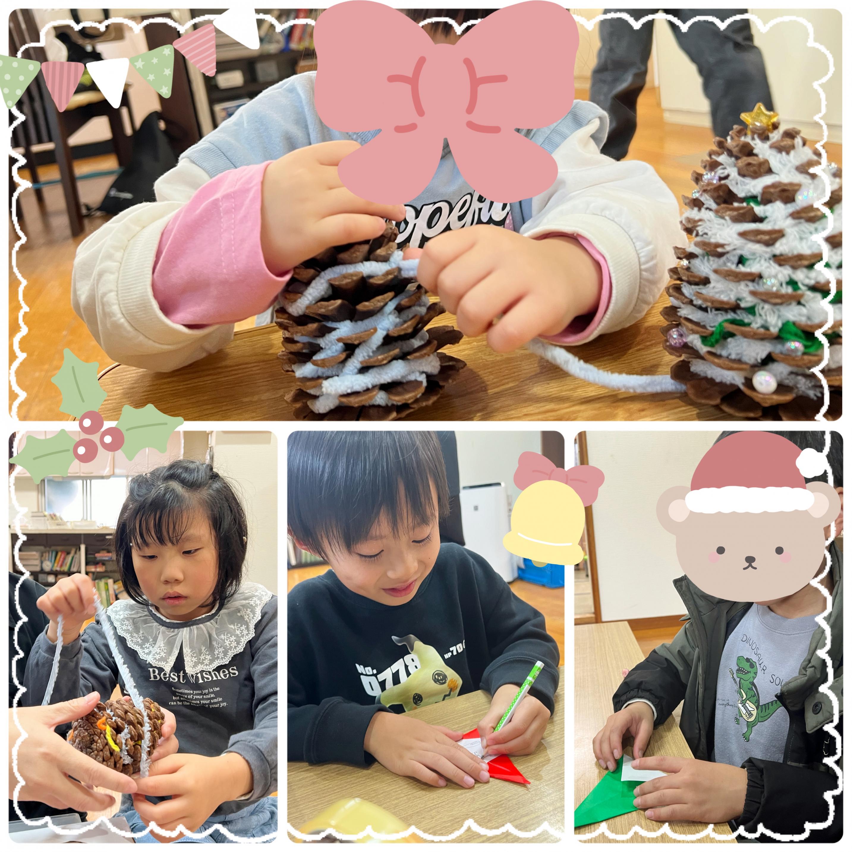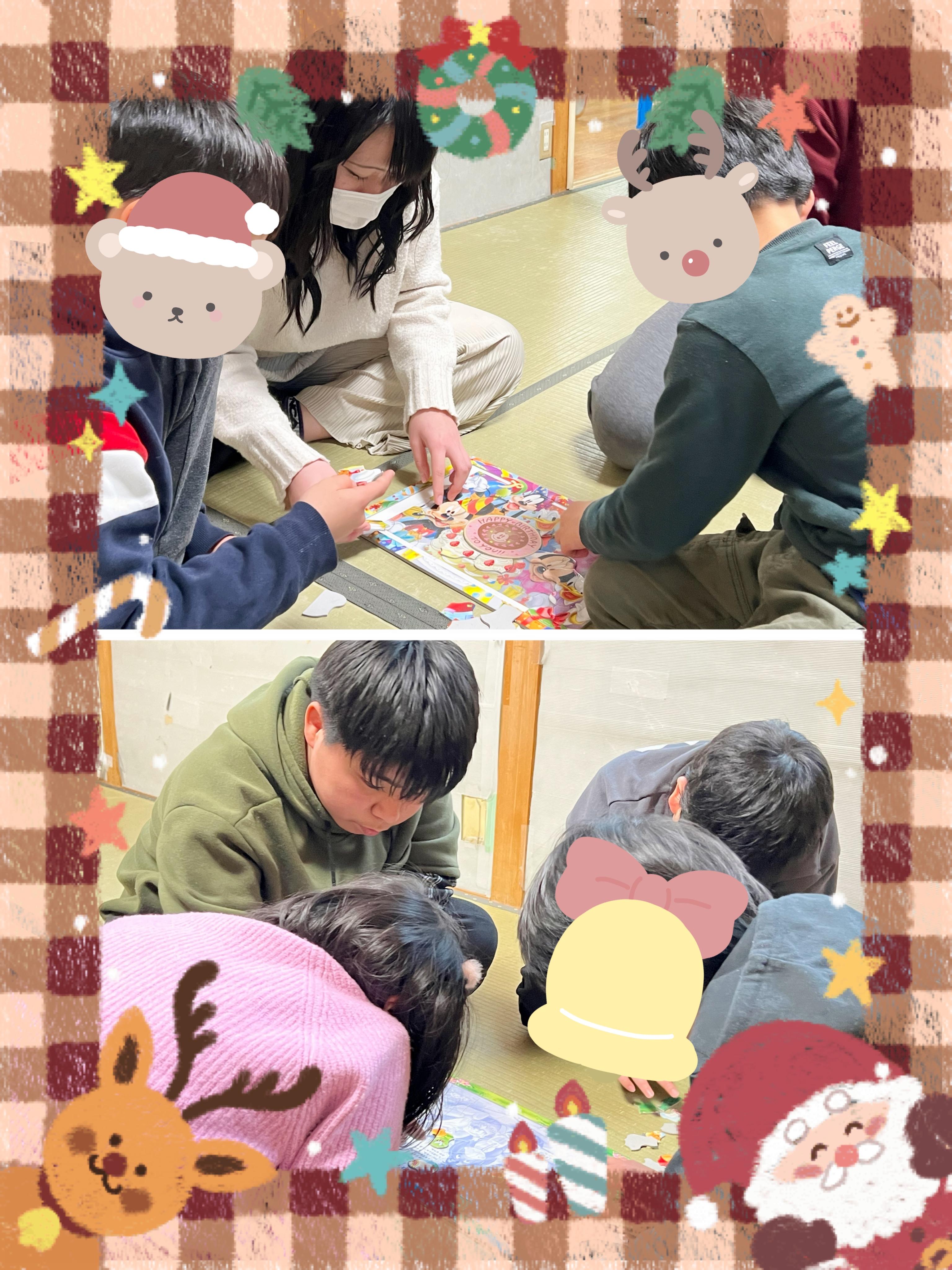 児童発達支援・放課後等デイサービス Familyぴーすです⭐ 12月の様子をお伝えしていきます ●製作、ツリー飾り付け● ![]() みんなが楽しみにしているクリスマス✨ 大きな松ぼっくりを使って、 クリスマスツリーを作りました! 毛糸をぐるぐる巻いて、 ビーズで飾り付け⭐ 小さなビーズを付けるためには 指先の細かい動きが必要なので 慎重に、集中して作っていました(๑و•̀ω•́)و ![]() ツリーになってしまった子がいますꉂꉂ(๑˃▿˂๑) 星を付ける役はじゃんけんで決めました! ●集団活動● ![]() 動物のまねっこ歩きをしました⭐ 腕や足だけでなく、 背中やお腹にも力を入れながら進んでいきます 体の使い方、力の入れ方など 難しいところもありましたが、 時間いっぱい頑張ることができました! ●お誕生日会● ![]() お誕生日おめでとう⸜(*ˊᗜˋ*)⸝ 歌うこと、絵を描くことが好きな女の子❤ お友達とたくさん遊んで、 笑顔いっぱいの1年になりますように✨ ●避難訓練● ![]() 今月は地震を想定した訓練を行いました! 防災のクイズ動画を観たあとは、 自分の住所とお家の人の連絡先を覚える練習をしています メモに書いて何度も読んで覚えたり、 語呂合わせで覚える子もいました! ●クリスマス会● ![]() みんながお待ちかねのクリスマス会⭐ 今年はババ抜き、神経衰弱を グループに分かれてトーナメント方式で楽しみました! ![]() ババを引いたときにいかに冷静でいられるかが大事です! 「あ゙ぁ〜〜〜」と悲鳴が聞こえていましたが…(^^) ババ抜きも神経衰弱も決勝戦まで行い、 惜しくも負けてしまった子たちは パズル対決をしました! ![]() こちらも「なんか入らん!」 「こっち!?」「同じ色の探して〜!」と 白熱していました⭐ トランプが終わったあとは みんなでケーキとポテトを食べました(*´༥`*) ![]() ケーキを前にすると笑顔がたくさん見られます✨ 食べ終わったらビンゴ大会! ![]() はじめはなかなか穴が空かず 「全然ない〜」と焦りもありましたが ひとりがリーチになると続々とリーチが出て 「ビンゴ!」「ぼくも!」と みんな景品を手に入れることができました(◍'◡'◍) ![]() それぞれ喜んでくれて良かったです❤ この日は子供たちのあいだで 「サンタさんに何もらった?」 「Switchのカセット!」「すみっこスマホ!」 「ぼくは明日来てくれるよ!」と サンタさんの話題で持ち切りでした! 来年もみんなにサンタさんが来てくれるといいですね✨ ●公園遊び● ![]() 今年最後の公園遊び⭐ 鬼ごっこでたくさん体を動かし 砂地にお絵描きしたり ブランコや滑り台をして 少し汗ばむくらい楽しめたようです✨ ーーーーーーーーーーーーーーーーー 今年も残りわずかとなりましたね 入学、進級したことがつい最近のことのように思いますが、 子どもたちは過ごした分、 しっかりと成長を見せてくれています。 大きな声で挨拶ができるようになった子、 自分の荷物を自分でカバンに入れられるようになった子、 忘れ物の確認ができるようになった子、 年下の子を気遣い、年上の振る舞いができるようになった子 それぞれが自分のペースで成長できた1年でした 苦手なこともありますが、 職員がサポートしたり、 お友達と良いところを吸収し合って できること、得意なことを増やしていけたらと思います また、私達職員がスムーズに支援をできるのも 保護者の皆様のご協力のおかげです。 今年も大変お世話になり、ありがとうございました。 来年も引き続きよろしくお願い申し上げます。 よいお年をお迎えください。 ーーーーーーーーーーーーーーーーー 年末年始の休業日のお知らせ 12月27日(土)〜1月4日(日) 〒773-0015 徳島県小松島市中田町字千代ヶ原24番地の1 TEL0885-32-1234 児童発達支援・放課後等デイサービスFamilyぴーす |