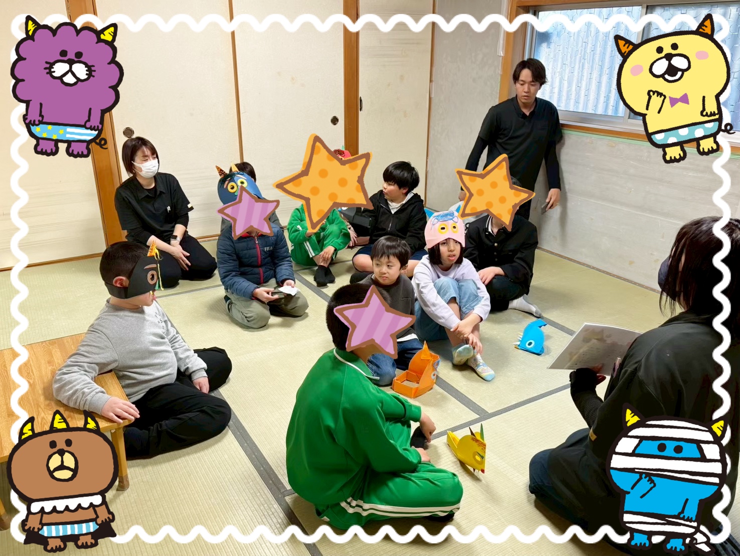 児童発達支援・放課後等デイサービス Familyぴーすです⭐ 2月の子どもたちの様子を お知らせします✨ ●節分● ![]() 職員と子ども達とで、豆まきをしました! 最初に節分がどんな行事かをお話して、 なんで「節分」という名前なのか、 なんで鬼は豆が嫌いなのか、 なんで恵方巻を食べる方角が決まっているのか、 静かに聞いていた子どもたちですが 「泣き虫鬼」「宿題イヤイヤ鬼」「片付けイヤイヤ鬼」 という話が出ると ぎくっ∑(º∨º ;)として少しソワソワし始めていました お話のあとは職員も含めてみんなで豆まきをし、 床一面豆だらけになるくらい投げましたが 大きい子を中心に掃除もできました 片付けイヤイヤ鬼は去ったようです⭐ ●避難訓練● ![]() 地震を想定した避難訓練を行い、 近くの小学校まで避難したあと ヘルプマークをつけて 自分のお家の連絡先を伝える練習もしました! はじめは電話番号をなかなか覚えられなかった子も スラスラと言えるようになりました 大きい子が小さい子の手を引いてあげたり、 繰り返しの訓練でできることがどんどん増えています ●アスティ徳島● ![]() ![]() アスティ徳島のイベントに参加しました✨ スタンプラリーで景品をもらったり、 水槽の魚を観たり、 キャンピングカーや クラシックカーに乗せてもらいました! シールブームのなか、 ゲームをしてシールをもらって とっても嬉しそうでした ●お誕生会● ![]() 手先がとっても器用な彼は、 LaQや折り紙、けん玉、こま回しが得意で 腕前は日々伸びています⭐ これからも得意なことをどんどん伸ばして 好きなことをたくさん見つけてほしいです 春休み中はお花見やお別れ会、 ピクニックや公園遊びなどの行事が たくさんありました 次のブログでお知らせします! 〒773-0015 徳島県小松島市中田町字千代ヶ原24番地の1 TEL0885-32-1234 児童発達支援・放課後等デイサービスFamilyぴーす |
